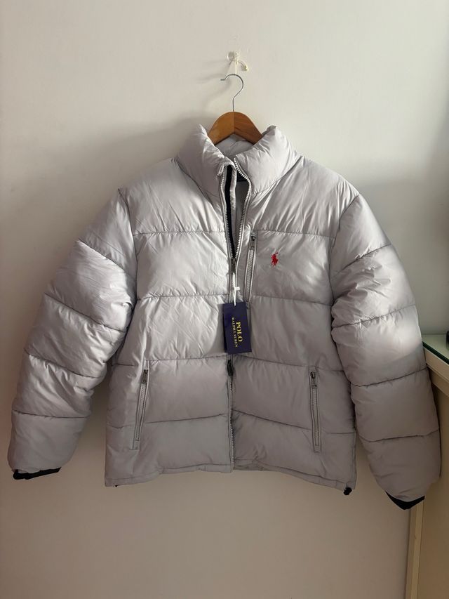 Chaqueta acolchada de la marca Polo Ralph Lauren en color gris. Presenta un diseño moderno y abrigador. Con etiquetas.