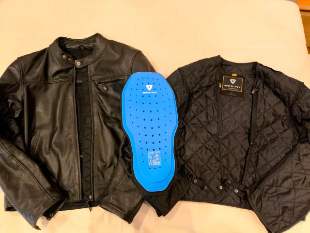 Detalles del productoChaqueta de cuero Revit en talla 54 (XL). Incluye protector de espalda.