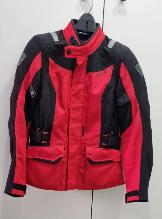 Detalles del productoChaqueta de moto Revit Voltiac mujer en color rojo y negro. Talla 36. Diseñada para ofrecer protección y comodidad. Está casi sin usar, como nueva.