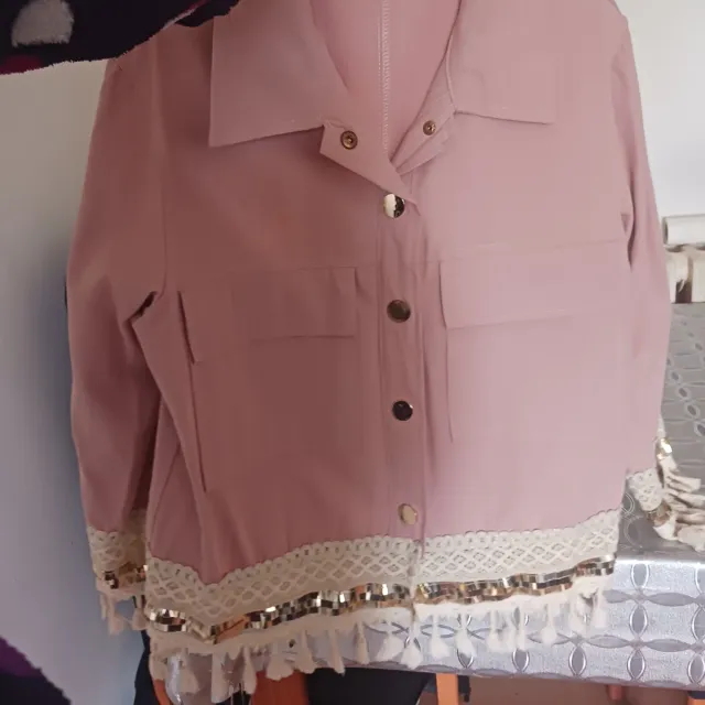 Chaqueta rosa con detalles dorados