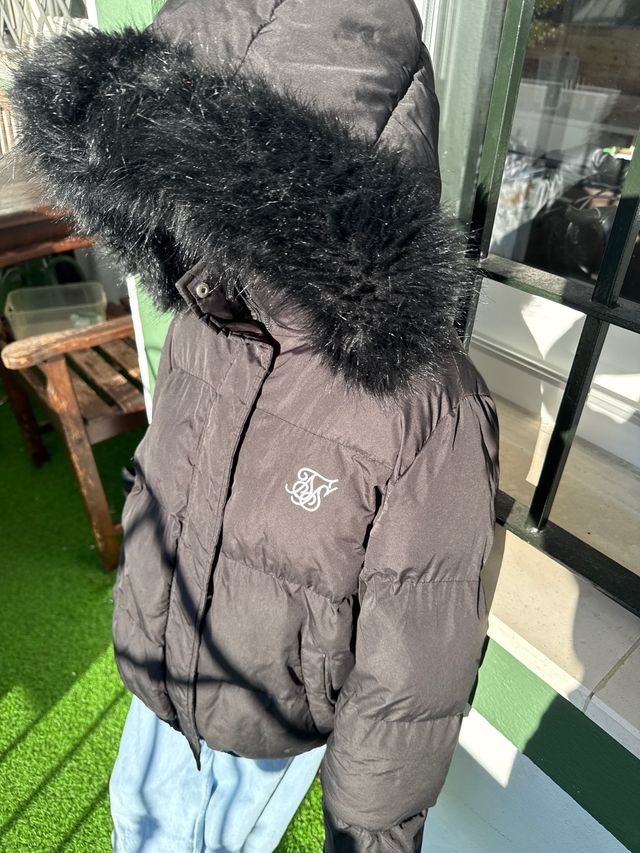 Chaqueta SikSilk Negra con Capucha y Pelo
