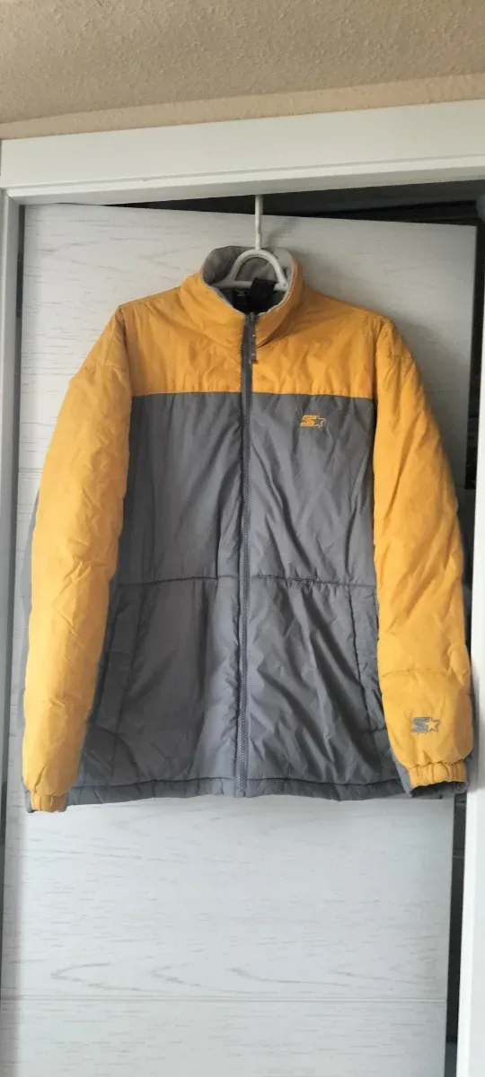 Chaqueta Starter Gris y Amarilla de plumas