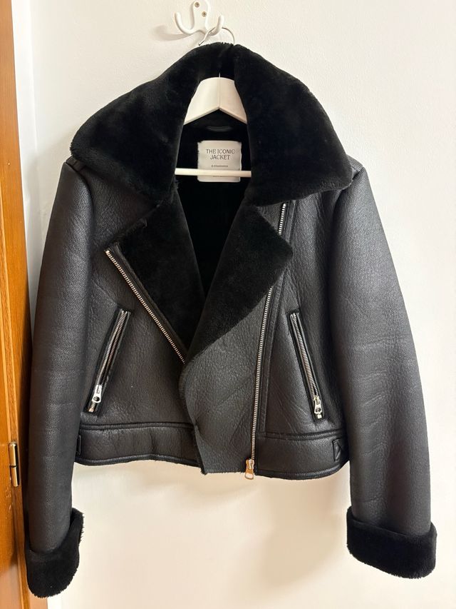 Chaqueta Stradivarius de Pelo y Cuero Negra