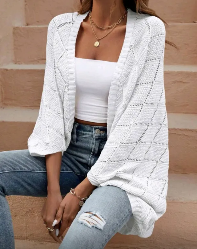 Chaqueta tejida blanca