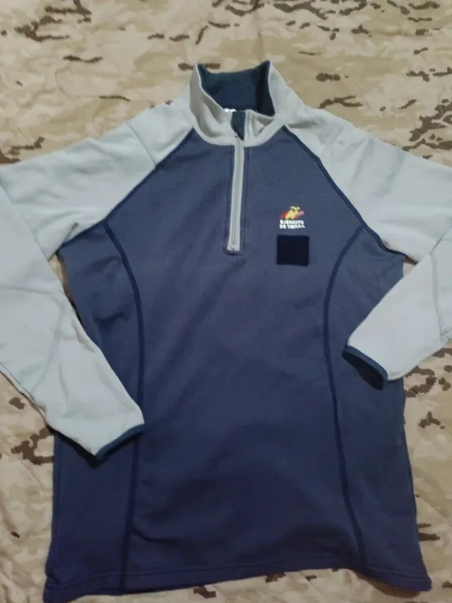 Detalles del productoChaqueta deportiva de color azul marino y gris, con cremallera frontal.