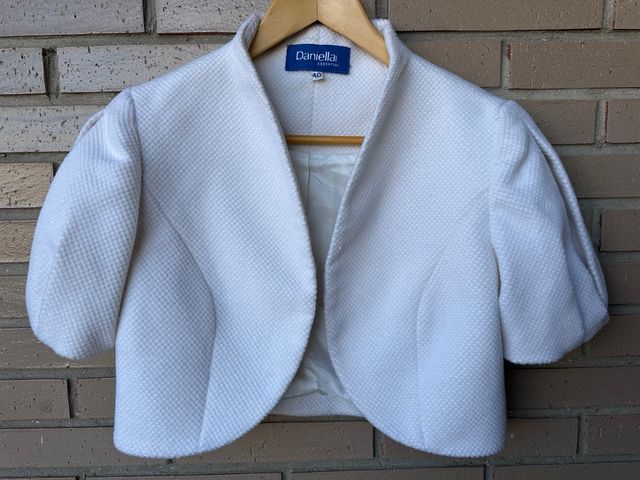 Elegante chaqueta torera de color crema, ideal para complementar cualquier atuendo.