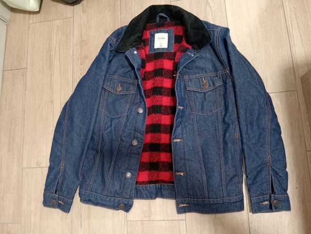Chaqueta vaquera hombre azul forro cuadros