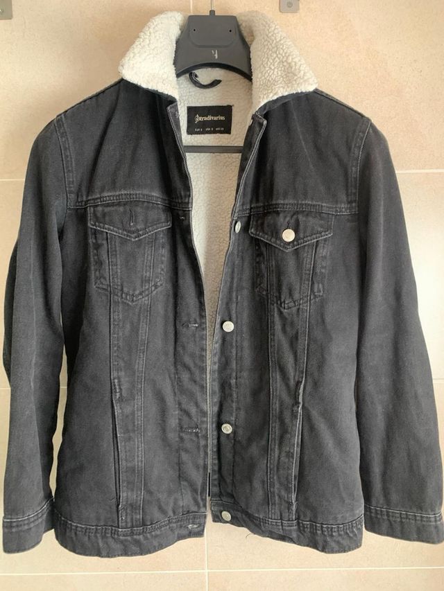 Chaqueta vaquera negra Stradivarius con borreguito