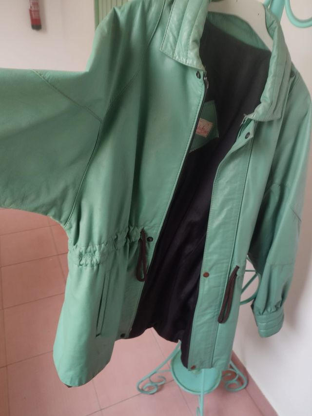Chaqueta y falda cuero verde