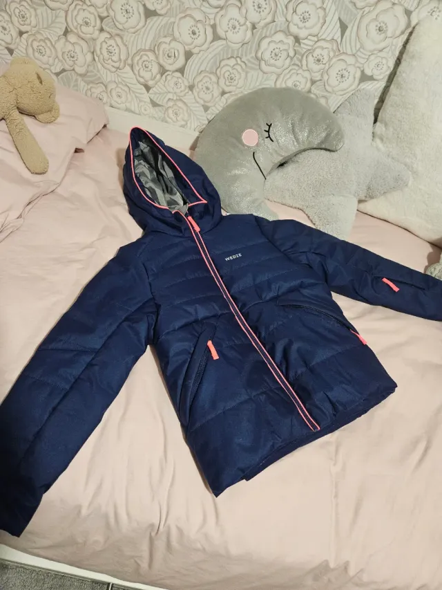 Cazadora azul y detalles en fucsia, pero fucsia y detalles en azul, conjunto de ski, talla 5-6, de decathlon, como nuevo.