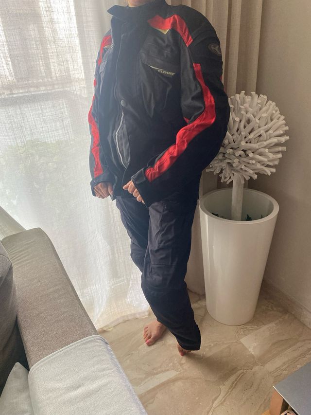 Detalles del productoConjunto de chaqueta y pantalones para moto de la marca Clover.