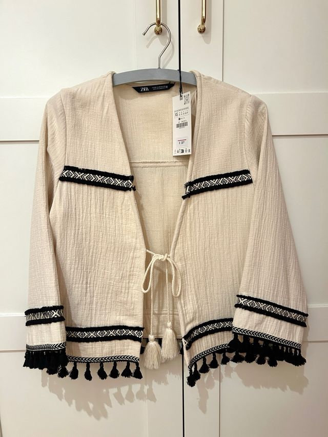 Chaqueta Zara bordada flecos XS
