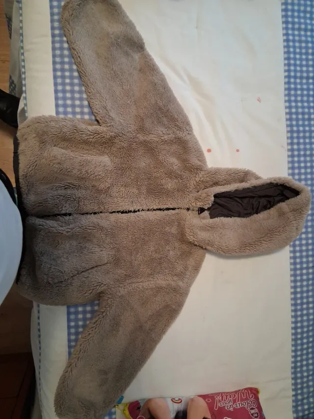 Chaqueta de Zara para niña, con un suave tejido de borreguito. - Color marrón. - Cierre de cremallera. - Capucha incorporada.