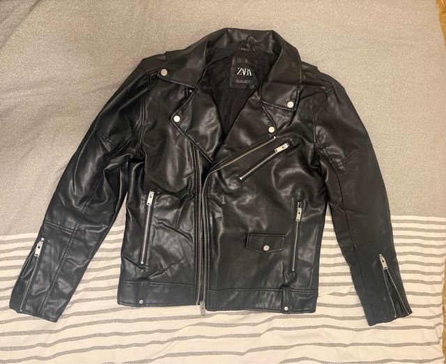 Chaqueta Zara efecto piel negra talla L
