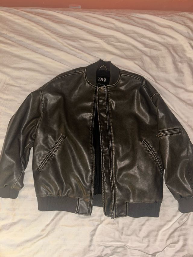 Chaqueta Zara efecto piel oversize gris
