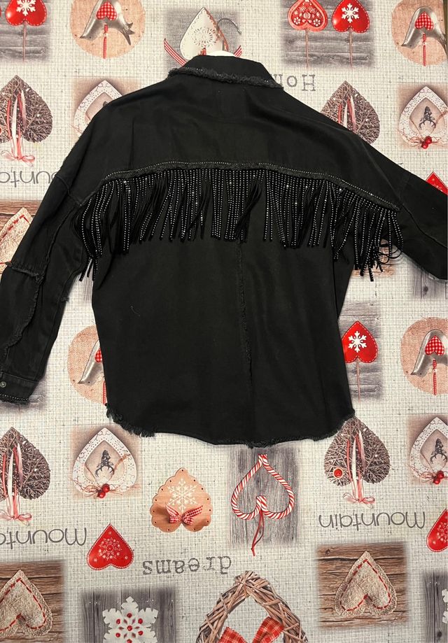 Chaqueta Zara negra flecos brillantes