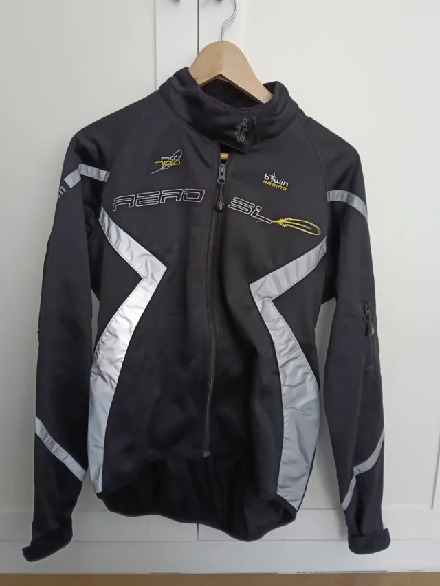 Chaqueta de ciclismo Btwin Aero SL en color negro invierno . Chaqueta roja entretiempo. Camiseta verano. Culottes largo y corto. Guantes.