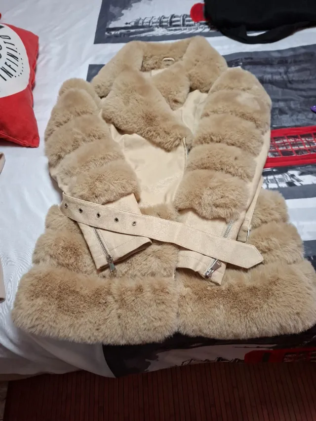 Elegante chaquetón de pelo sintético en tono beige. Perfecto para añadir un toque de estilo a tus outfits.
