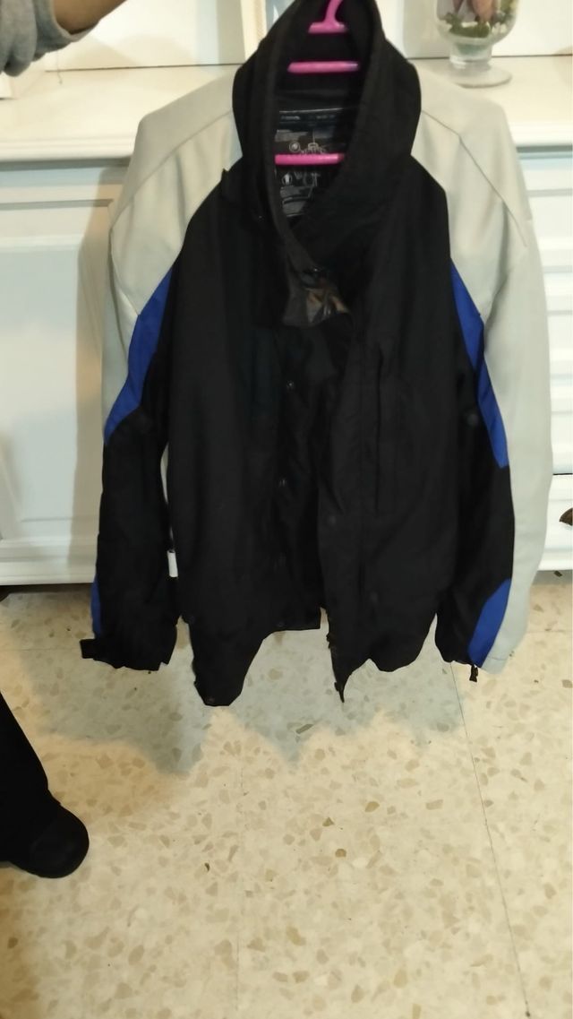 Estupenda chaqueta de motorista Dainese con diseño moderno. Tiene protecciones. Talla 58. - Color principal negro. - Detalles en azul y gris. - Cuello alto.