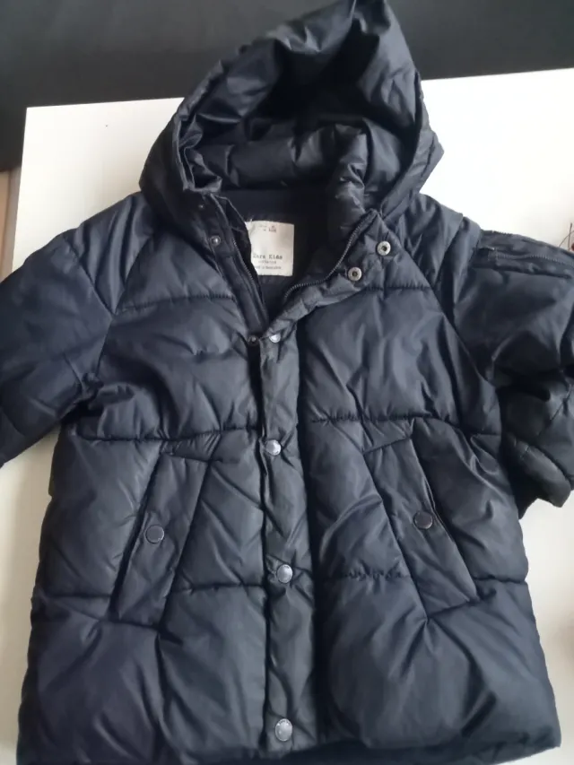 Chaqueta acolchada de Zara para niño en color azul. - Talla 8. - Diseño con capucha. - Cierre de botones a presión.