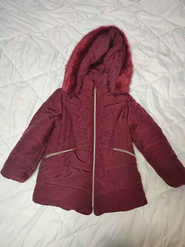 Chaquetón de abrigo para niña de Mayoral. Talla, 102cm, 3 años - Color burdeos. - Capucha con pelo. - Cierre de cremallera. - Bolsillos laterales.