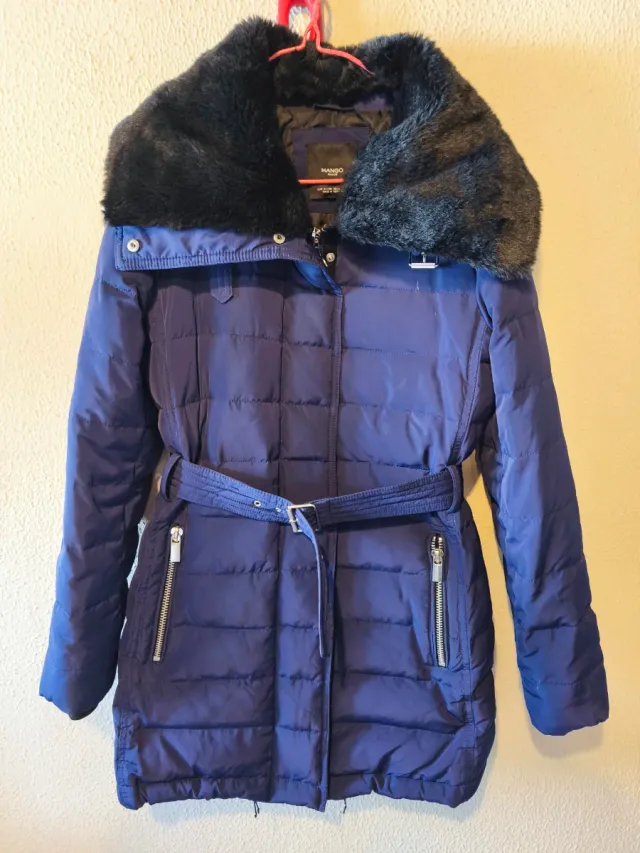 Chaquetón Mango Azul Marino con Cuello Peludo