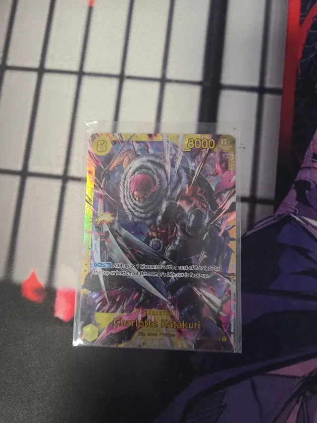 Detalles del productoCarta de Charlotte Katakuri del juego de cartas coleccionables One Piece, edición OP03.