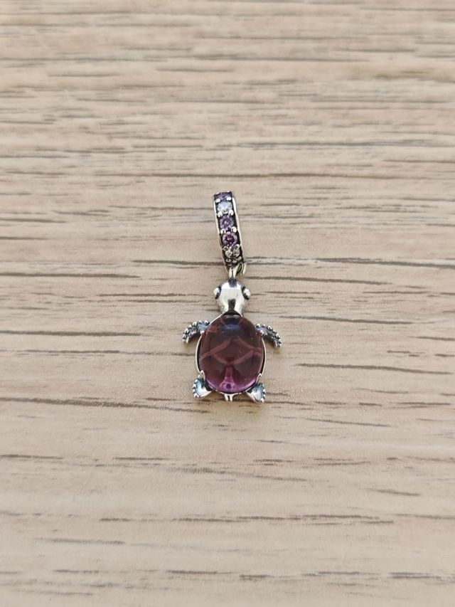 Charm de plata tortuga cristal de murano morado