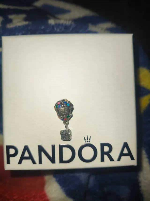 Charm de plata Up compatible para pulsera Pandora. Un accesorio encantador para tu pulsera. - Globo decorado con esmalte multicolor. - Cesta detallada con diseño de casa.