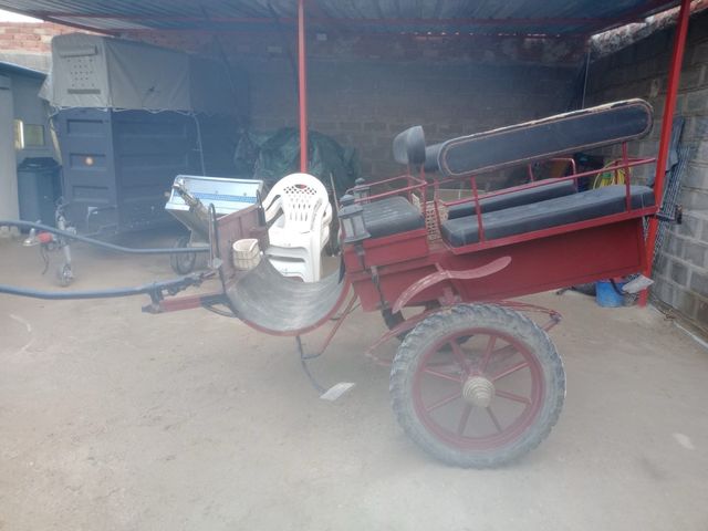 Detalles del productoSe vende carro de caballos antiguo. Es un vehículo de dos ruedas, de color rojo, con asientos de cuero negro.  Está en buen estado, aunque muestra señales de uso hay modo de trasportar si se requiere