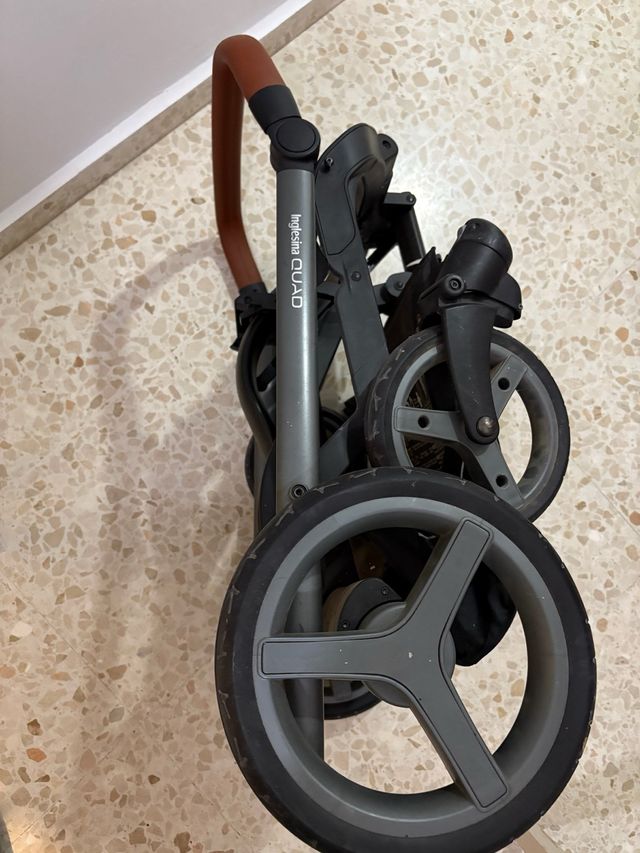 Chasis de la marca Inglesina, modelo Quad. Es un chasis robusto y fácil de maniobrar. - Color gris. - Ruedas grandes para todo tipo de terrenos. - Empuñadura ergonómica.