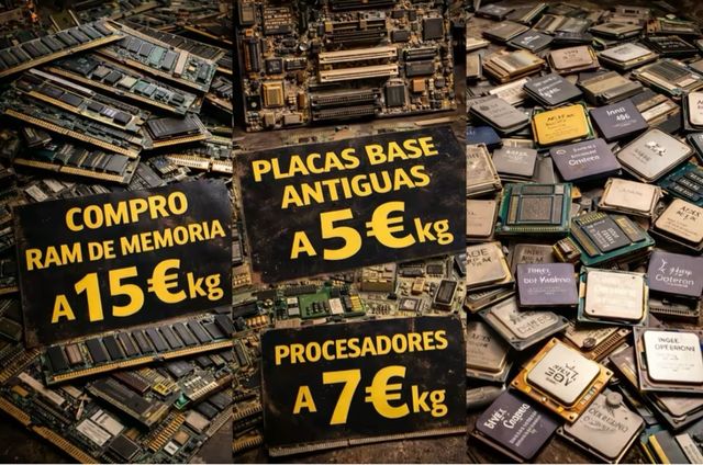 reciclaje o proyectos. - Compra de RAM de memoria a 15€/kg. - Placas base antiguas a 5€/kg. - Procesadores a 7€/kg Rtx amd intel shappire