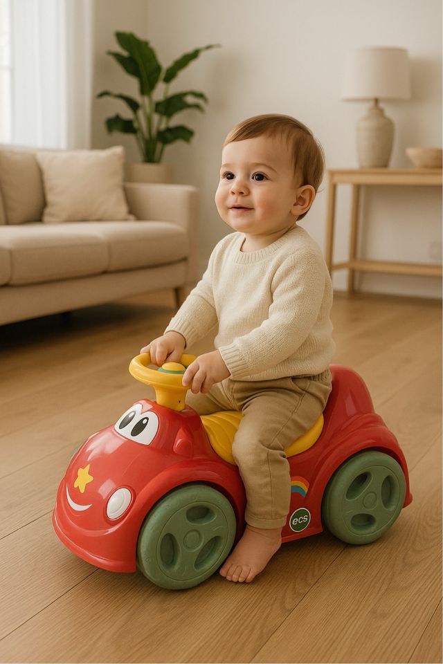 Detalles del producto¡Diversión asegurada sobre ruedas! 🥳 Este simpático cochecito rojo con carita sonriente es perfecto para los peques que empiezan a explorar el mundo sobre ruedas.