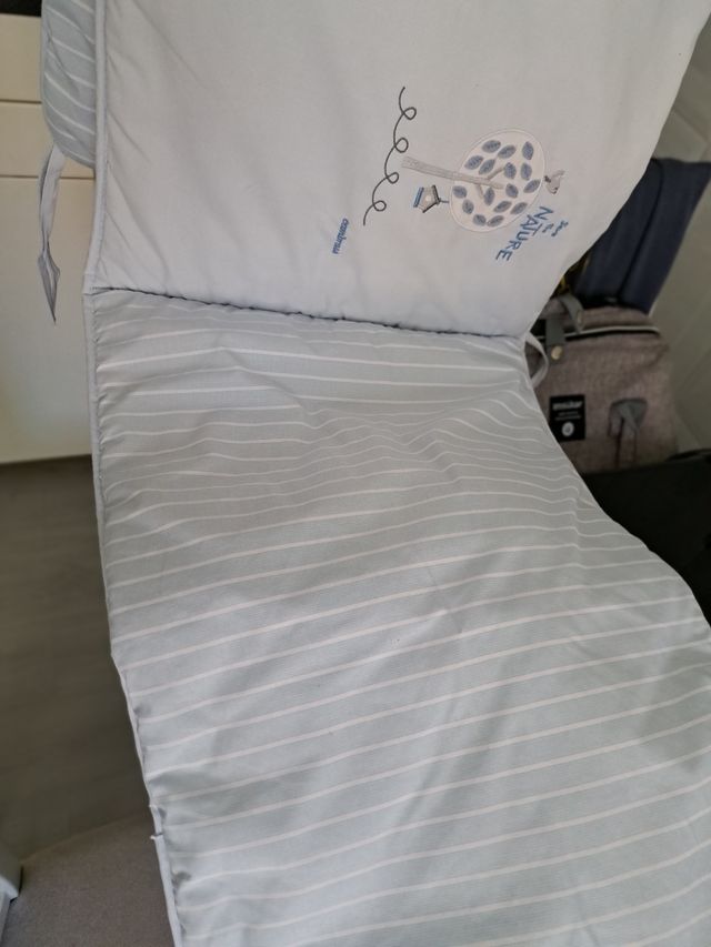 Detalles del productoEdredón y protector para cuna azul claro marca nature con su bolsa original. Los lazos del protector un poco usados. El resto como nuevo. también incluye 2 cubre colchones y 3 juegos de sábanas de cuna con sabana banera , sabana y funda.
