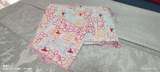 conjunto de chichonera y funda nórdica para cuna en buen estado. Tengo también el nórdico en venta en perfecto estado.. por si interesa preguntar..