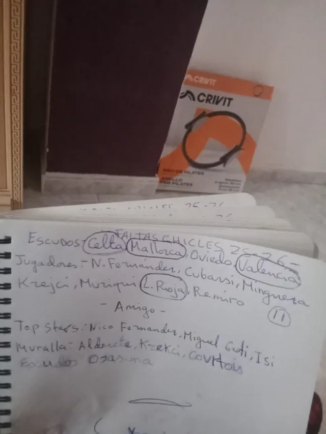 - Incluye escudos de equipos como Celta, Mallorca, Oviedo y Valencia.