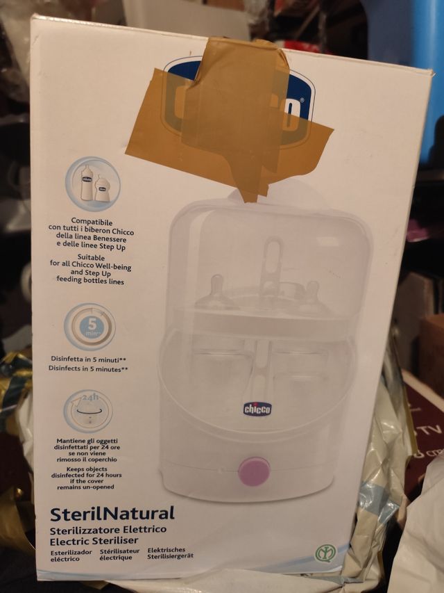 Detalles del productoEl Esterilizador Eléctrico Sterilnatural aprovecha las propiedades del vapor para desinfectar rápidamente y de modo natural los objetos del bebé (biberones, tetinas, chupetes, juguetes, etc... compatibles con la desinfección en caliente). Práctico, compacto y funcional, es compatible con todos los biberones Chicco. Especificaciones · Cubierta transparente. · Esteriliza hasta 7 biberones (150ml). · Interior extraíble. · Apagado automático. · Tiempo esterilización : 15 minutos.