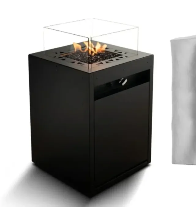 Chimenea Exterior y Mesa Decorativa Negra