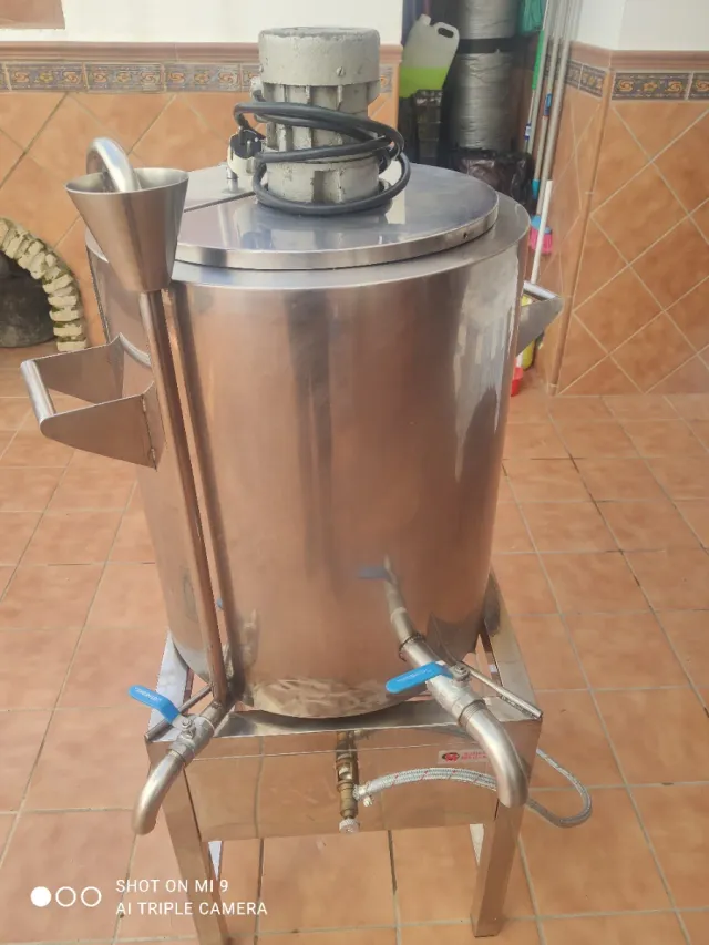 Se vende chocolatera de 50 litros junto con su fogón. - Material: Acero inoxidable. - Capacidad: 50 litros. - Incluye fogón.