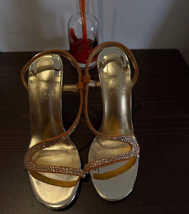 Christian Louboutin Sandalias Doradas Tacon