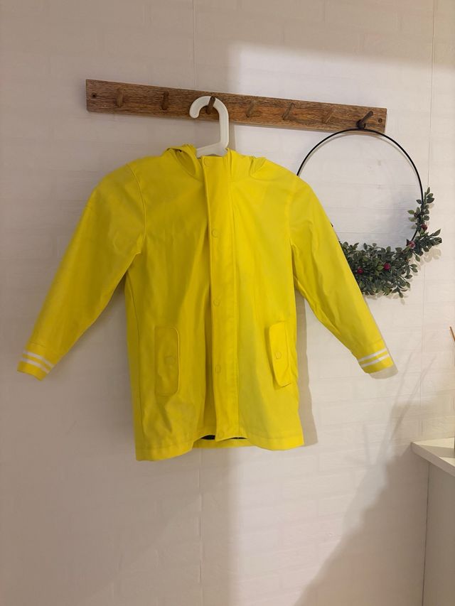 Chubasquero infantil de la marca Igle en color amarillo. - Diseño con capucha. - Cierre de botones. - Dos bolsillos delanteros. - Puños con detalle de rayas blancas.