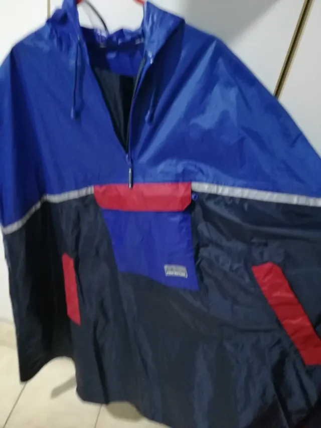 Chubasquero impermeable azul y rojo