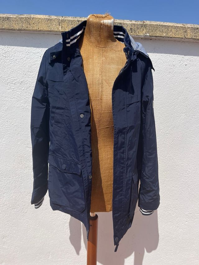 Detalles del productoChubasquero infantil de color azul marino, ideal para protegerse de la lluvia.