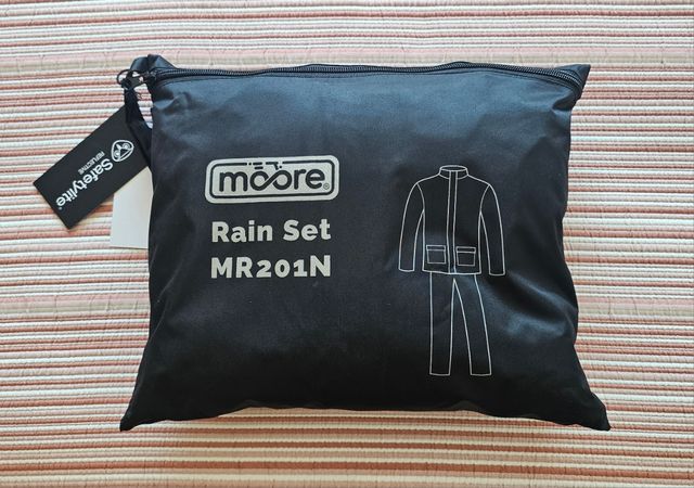 Detalles del productoConjunto chubasquero para moto Moore MR201N, nuevo a estrenar. Se entrega en su bolsa original para mejor transporte. Muy resistente y cómodo.