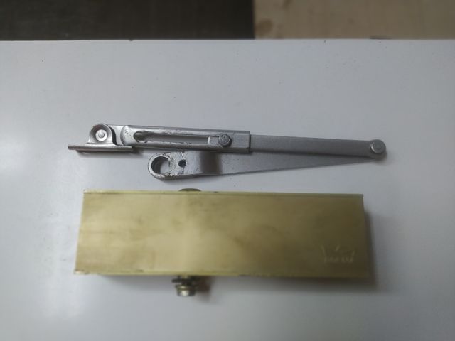 Este es un cierre de puerta con un diseño funcional y materiales duraderos. - Mecanismo de cierre metálico. - Cuerpo principal de color dorado.
