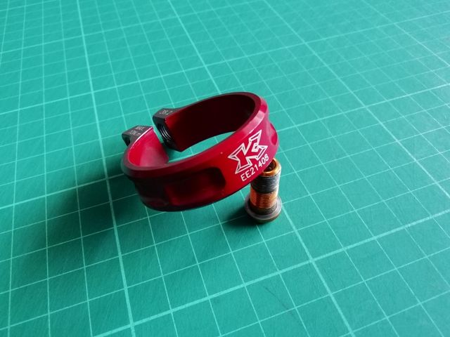 Cierre tija de la prestigiosa marca KCNC de Al y Titanio. Muy ligera. Para tijas de 34,9.