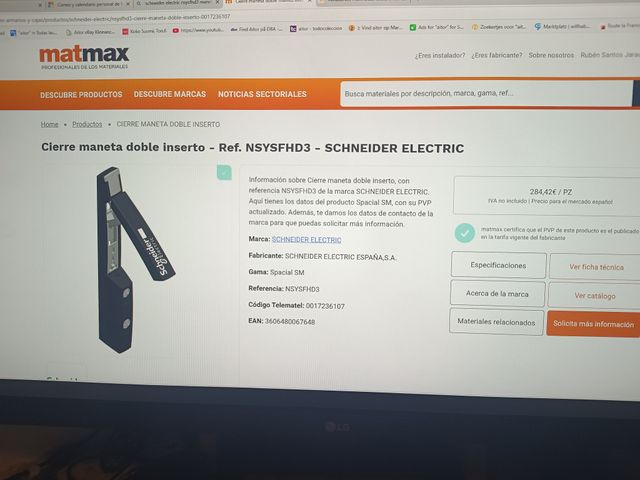 Detalles del productoCierre de maneta doble inserto de la marca Schneider Electric, modelo NSYSFHD3, nueva sin uso.