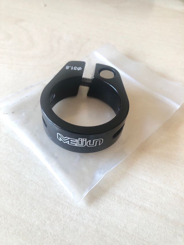 Cierre de sillín de la marca Meijun, en color negro y con un diámetro de 31.8mm. Nuevo, sin usar - Material: Aluminio. - Color: Negro.