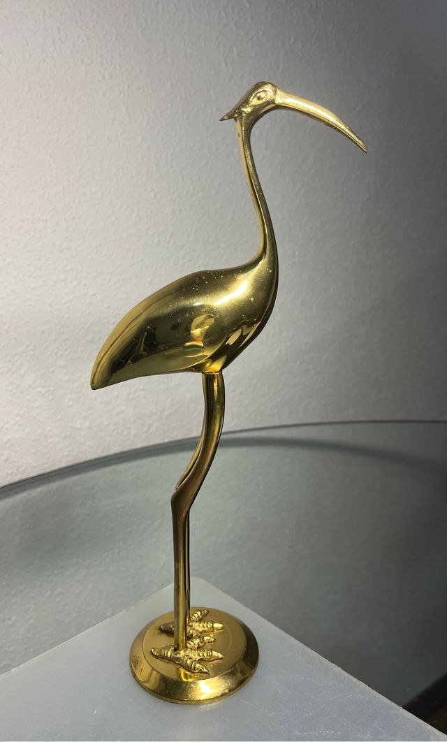 Figura de cigüeña en bronce pulido de 24cms.