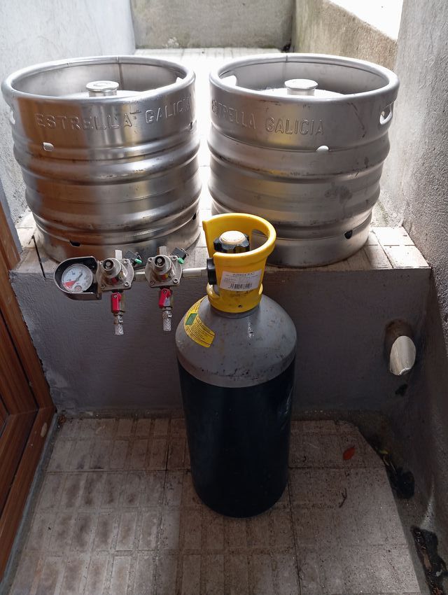 Cilindro con manómetro y 2 barriles en perfecto estado.En separado 15,00 cada barril y 50,00 el cilindro